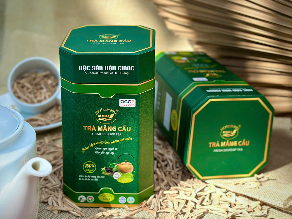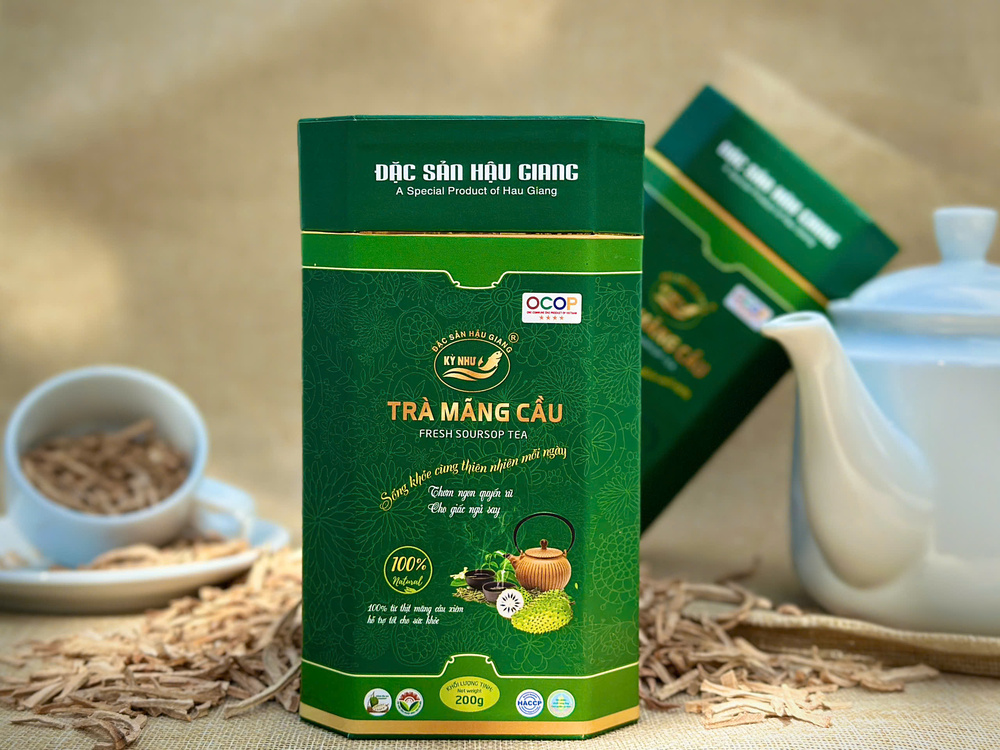 Trà mãng cầu Kỳ Như – đặc sản nổi tiếng từ Hậu Giang, kết hợp hoàn hảo giữa hương vị tự nhiên và giá trị dinh dưỡng quý giá. Được chế biến từ 100% thịt mãng cầu xiêm, trà không chỉ mang đến hương thơm nhẹ nhàng và vị chua ngọt hấp dẫn, mà còn hỗ trợ giấc